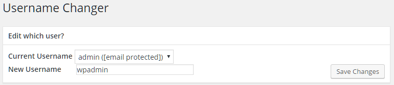 and select the admin username from the dropdown menu. Change this to something memorable – as long as it isn’t admin our work is done. Here we’ve set it to “wpadmin”. You’ll have to log back into WordPress with this new username once it’s changed. The password will be unaffected.